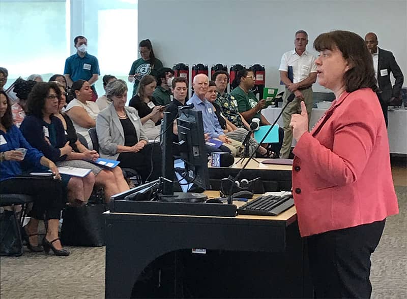 We also want to thank our legislative leaders who spoke passionately for the work of ending homelessness: Senator John Velis, Representative Shirley Arriaga and Representative Tricia Farley-Bouvier. And we thank every western Massachusetts legislator who was able to join in the gathering that day: Senators Jo Comerford and Jake Oliveira, Representatives Natalie Blais, Dan Carey, Mindy Domb, Patricia Duffy, Michael Finn, Lindsay Sabadosa and Aaron Saunders, as well as the offices of Senator Adam Gomez and Representative Kelly Pease. We also thank Holyoke Mayor Josh Garcia for welcoming us, along with Holyoke Community College President Christina Royal and DHCD’s Director of Housing Stabilization, Alvina Brevard.