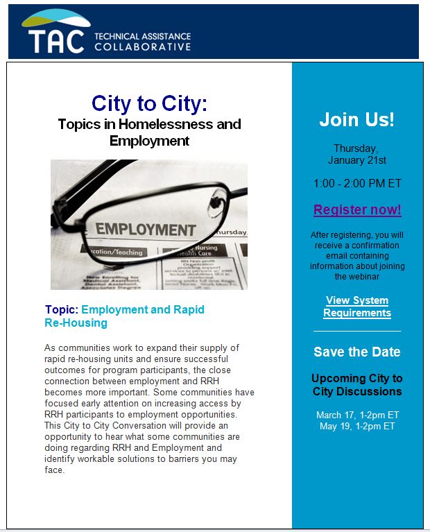 Employment and Rapid Rehousing: TAC Phone Conference Jan. 21